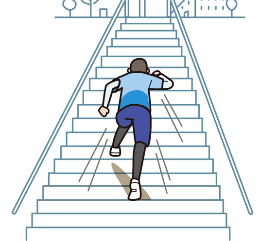 坂ダッシュで得ることのできる効果はずばり加速局面の強化です。上のイラストも素晴らしい加速を見せてくれています笑。他にも少し長めの坂ダッシュをすることで筋持久力の向上が期待できますが主に加速局面における推進力の向上が主な効果になります。